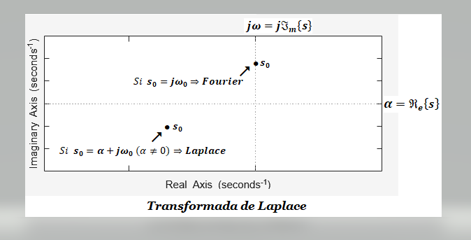 Observar en la Figura 1 que la unidad de la variable «s» es «segundos-1«. Es así porque, por defecto, cuando se obtiene la Transformada de Laplace con la ecuación (1), la variable eliminada es el tiempo, cuya unidad es el segundo.